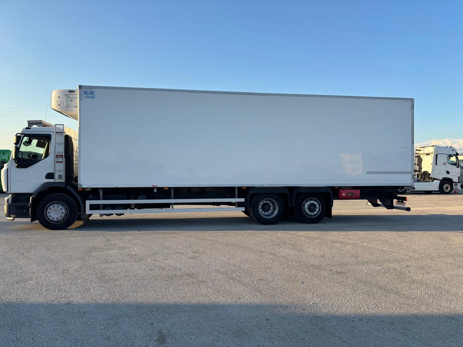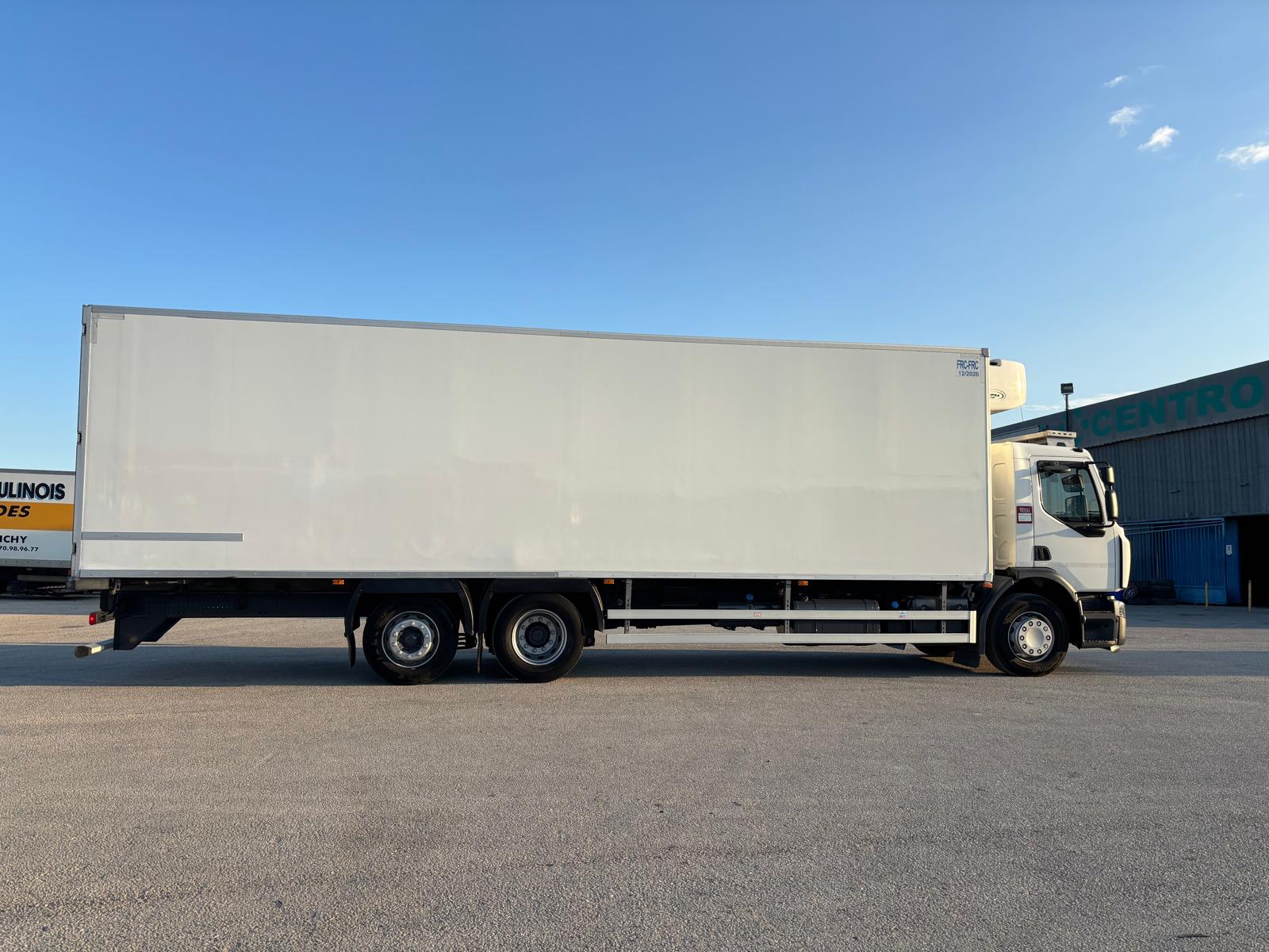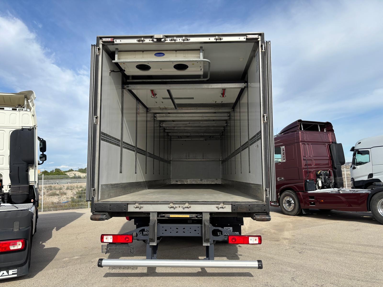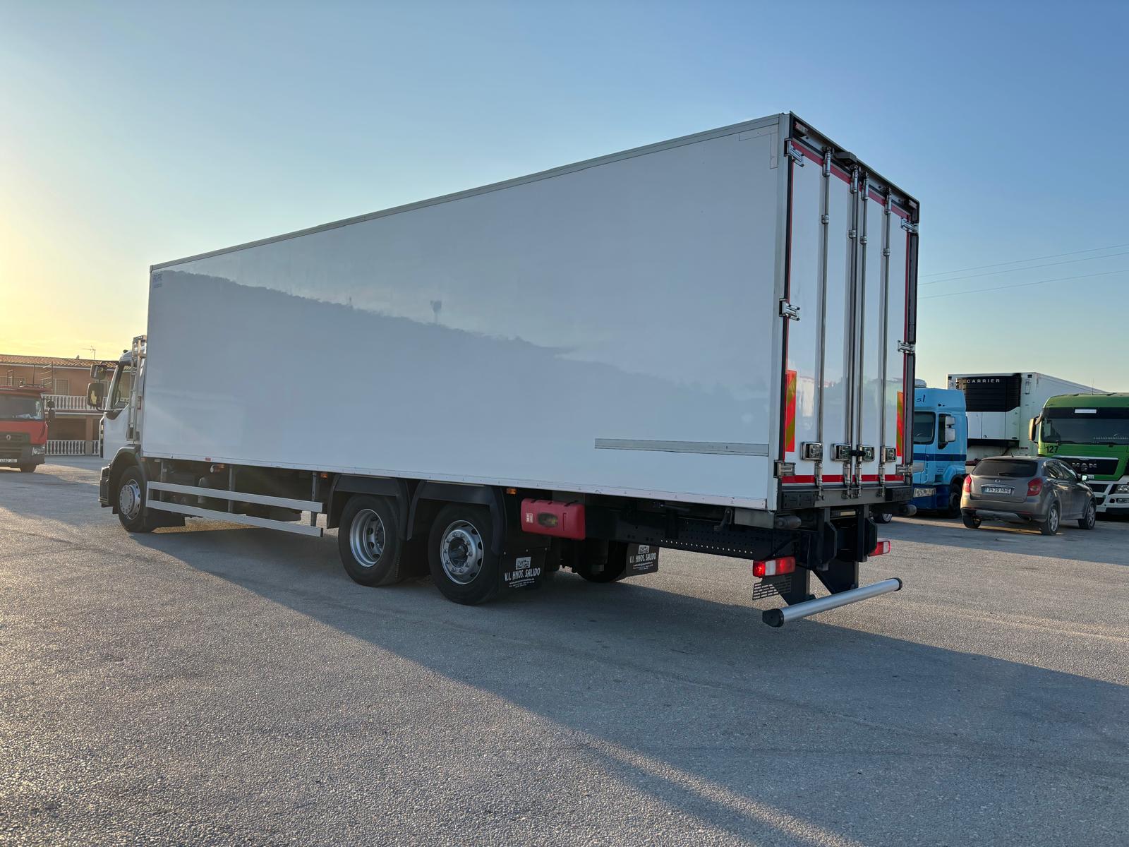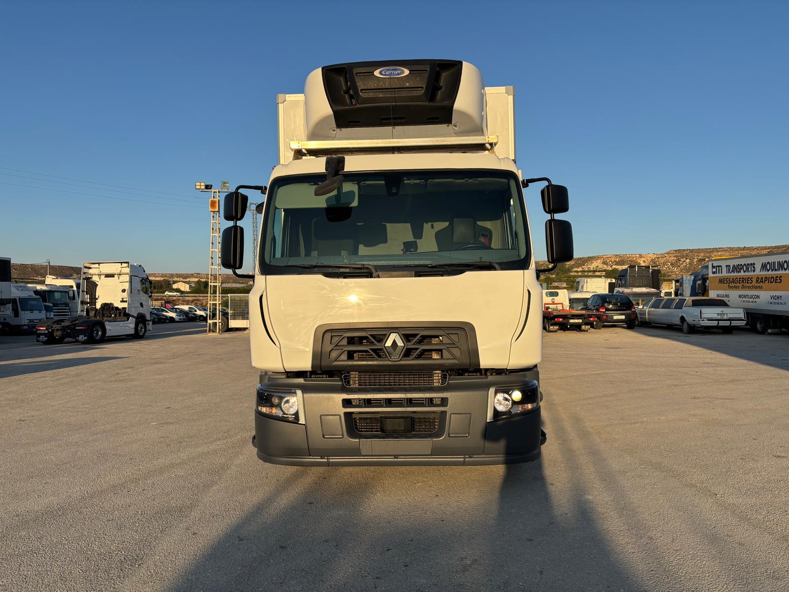 COMPRAVENTA HNOS. SALIDO. Camión frigorífico, Renault D26 WIDE, del año 2018. Automático, eje elevable, freno motor, equipo de frío Carrier 1250 multitemperatura, tabique separador de carga y carrocería doble piso. Medidas interiores carrocería: largo 9.60, alto 2.45, ancho 2.48. En muy buen estado para su funcionamiento. Interior perfecto estado de conservación. Se entrega revisado y con garantía. Más de 30 años de experiencia en el sector.