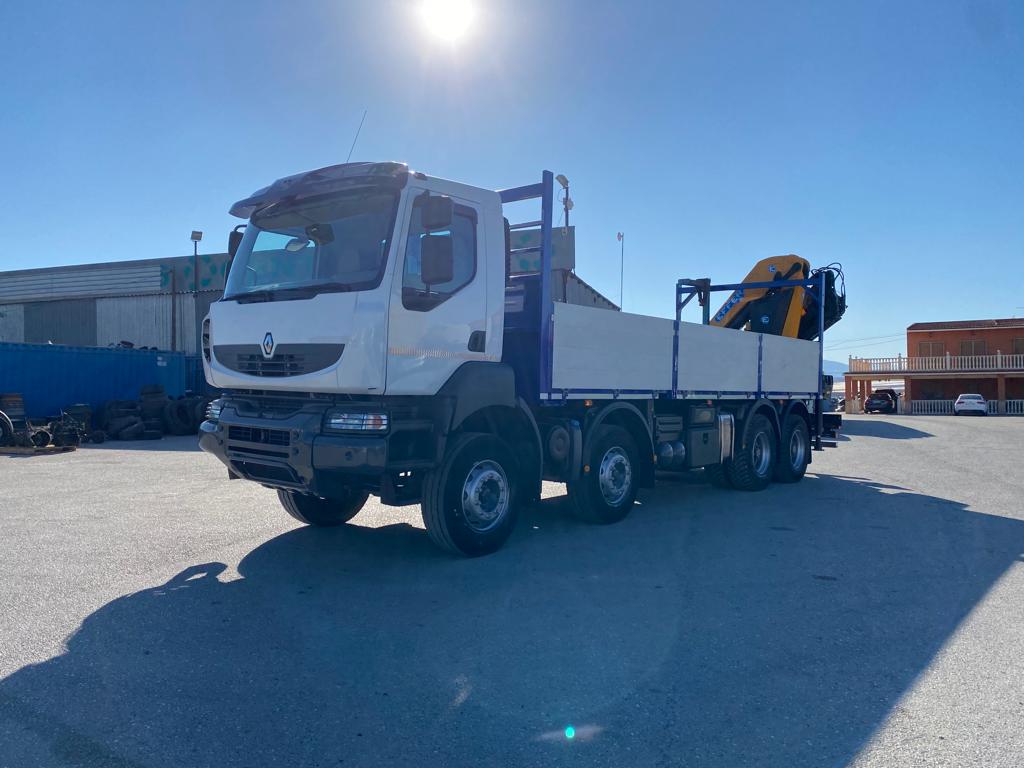 COMPRAVENTA HNOS. SALIDO. Renault kerax 430DXI 8X4, matriculado en el año 2011. Automático, doble dirección, doble tracción. Equipado con grúa Effer (6 prolongas) modelo Crane 305/6S. Carrocería caja abierta: largo 7.22, ancho 2.46. En muy buen estado para su funcionamiento. Interior perfecto estado de conservación. Se entrega revisado y con garantía. Más de 30 años de experiencia en el sector.